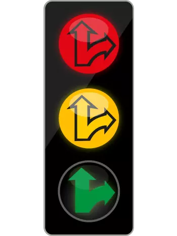 Pro řidiče odbočujícího vpravo platí pouze signál umístěný vpravo od jízdního pruhu určeného pro odbočení vpravo nebo signál umístěný nad tímto jízdním pruhem.